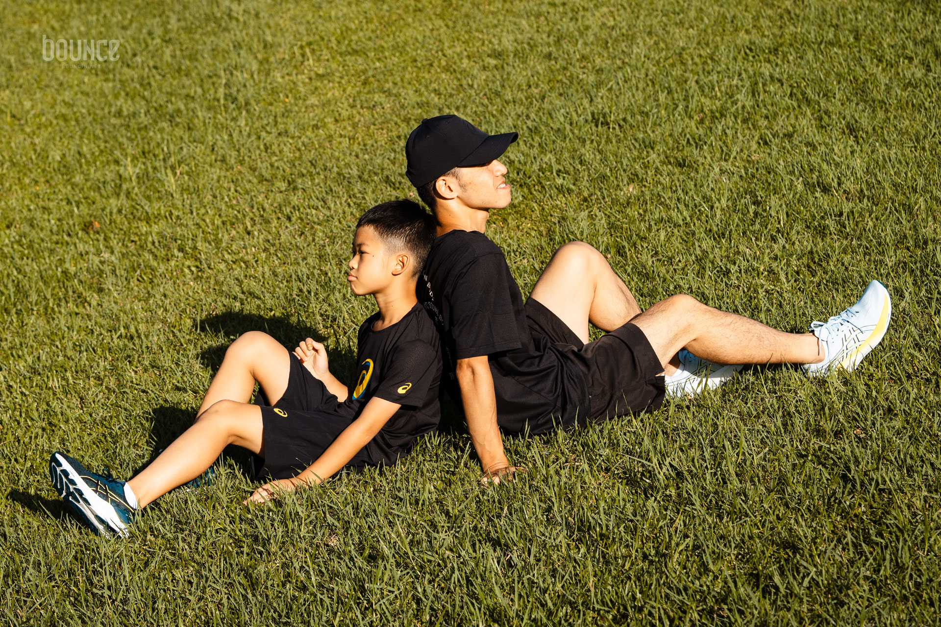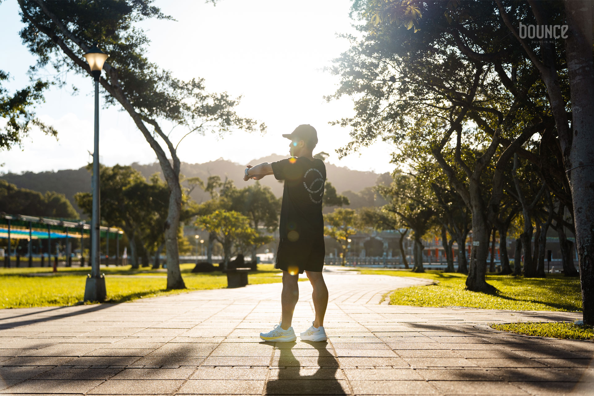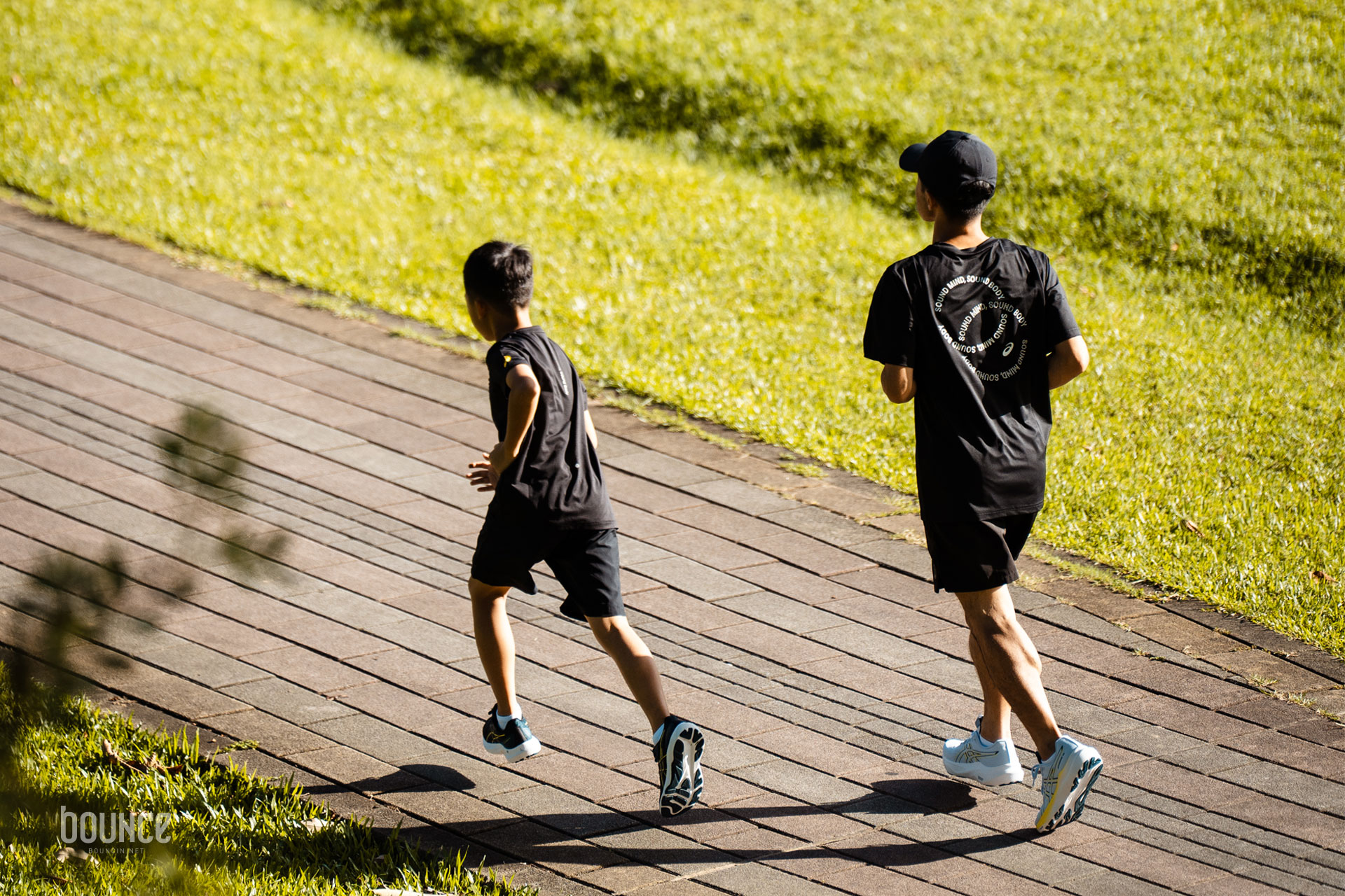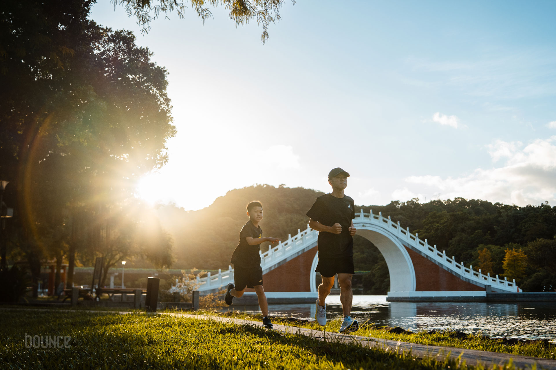 其實訪問開始沒多久,即使仍是清晨,Phoenix 的妻子就來一旁探班,Phoenix 提到從兒子加入球隊還有跟他開始固定慢跑後,妻子也開始加入:「上回去東京旅遊買了她第一雙慢跑鞋,兒子則是會開始詢問為什麼要跑越來越遠,怎麼設定個人目標跑步相關問題,除了趁機把收集到的資訊灌輸給他,會拿他有興趣的運動像是棒球跟籃球作例子,說明每個人因為自己身體跟特質的不同,除了都需要做到的基礎訓練外,要針對自己不這麼強或是特點去多做或是調整訓練模式。」他認為運動為家庭帶來更多話題與共同成長的機會,甚至由於兒子目前涉獵的運動項目多元,一起挑選鞋子也是門大學問。