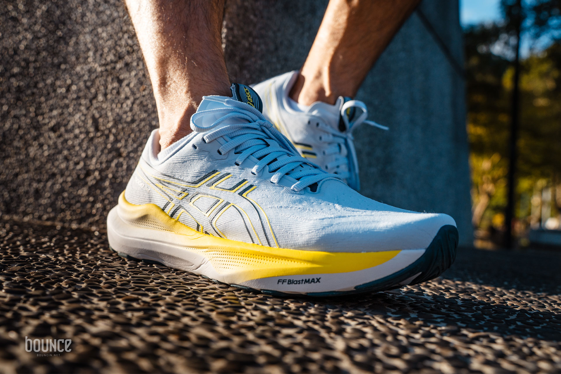 當天他穿著的 GT-2000 14 則是系列最新作, GT-2000 系列一直都是 ASICS 跑步產品線中入門卻十分泛用的全方位訓練鞋,這一代除了與童鞋相同,後跟易磨損區域採用 AHAR+高耐磨橡膠,彈力性能有所提升的 FF BLAST MAX 中底結合蹦床式大底與後跟內置式 PureGEL亞瑟膠,進一步增加穿著時的回彈感還有保護,3D GUIDANCE 穩定結構加寬了大底、中底幾何結構與後跟傾斜角度,為跑步過程提供穩定及支撐引導,以及幫助步伐轉換的順暢,是輔助各類需要穩定完成課表的重要設計。