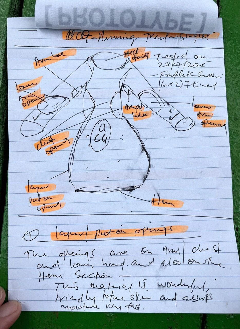 故事的走向延續了 Eliud Kipchoge 一貫的風格。他試穿、奔跑、記錄,寫下密密麻麻的手稿,標注每一處細節和回饋,保持與 Nike 產品團隊的溝通討論,不斷改進和提出新的建議。他對這款上衣愛不釋手,並決定將它穿上賽場,迎接職業生涯中少有的又一個「第一次」。