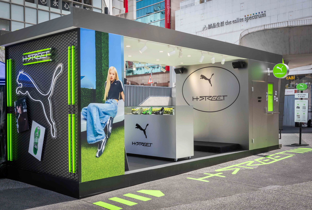 PUMA 於 4 月 3 日至 4 月 26 日限時打造「PUMA H-STREET 潮流得來速」。快閃店以銀色基底碰撞銀光綠,展現摩登未來感,潮流玩家可沉浸式體驗「得來速流程」: