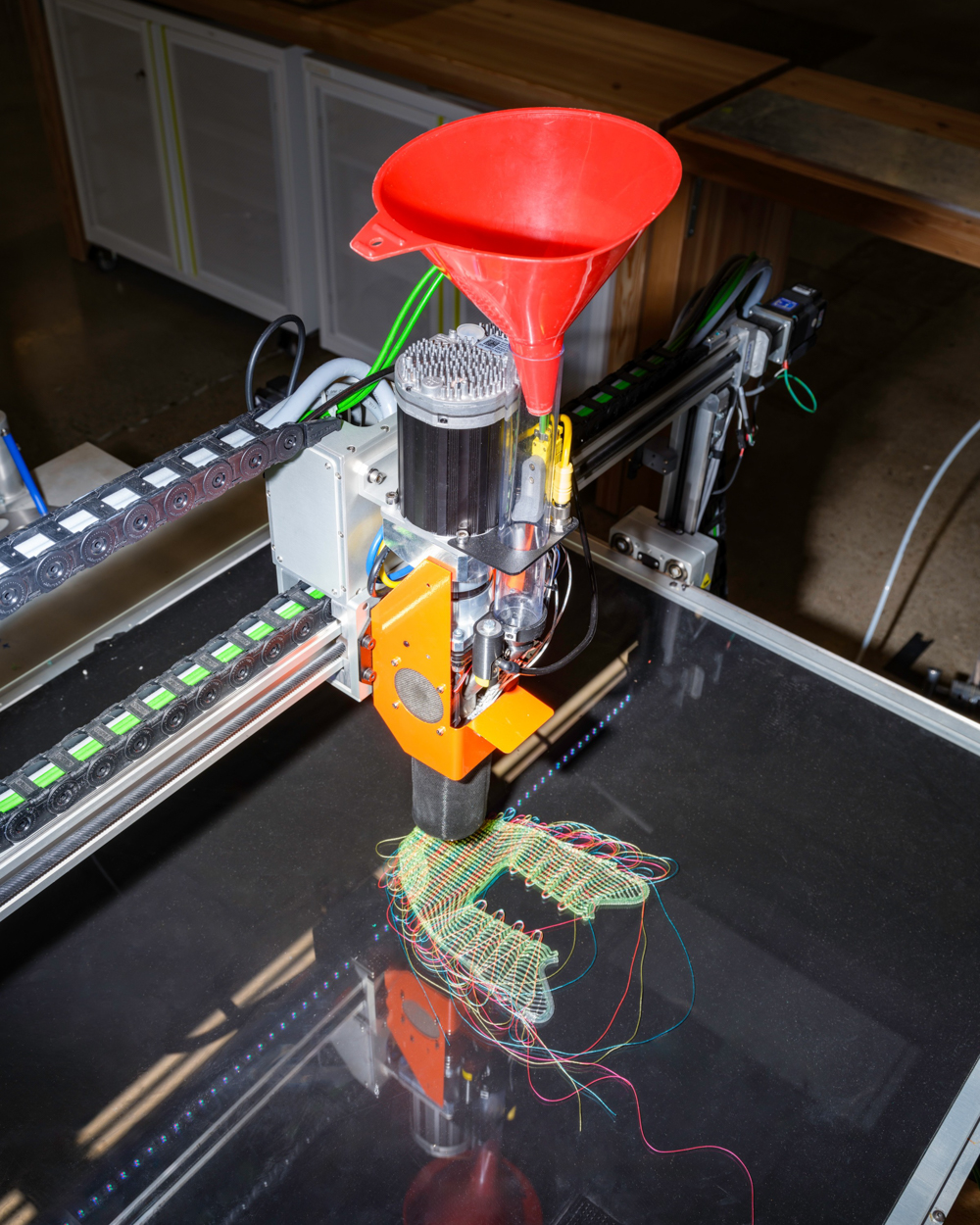 Nike 改造、翻新與客製化設備的傳統,可追溯至品牌共同創辦人 Bill Bowerman。這台 3D 列印機經過改裝後,不再使用常見的「線材」,而是改以熱塑性聚氨酯 (TPU) 顆粒,專門用來製作 Flyprint 鞋面。