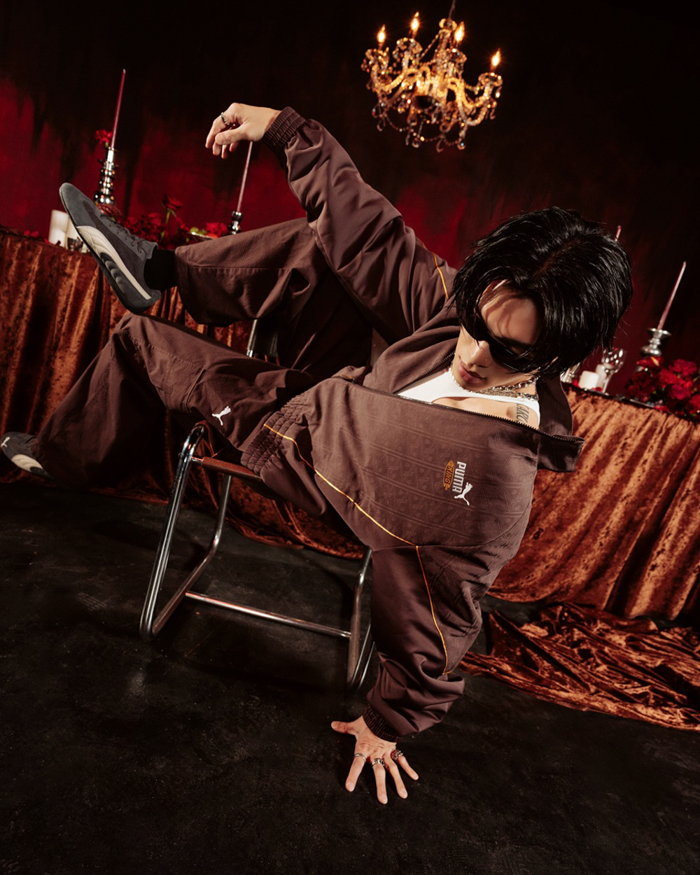 作為 PUMA 全新品牌形象大使,KIRE 指定穿上 SPEEDCAT CORDUROY #奢絨灰,呼應滿滿的派對氛圍,搭配可可棕立領風衣外套與長風褲,內搭簡約白短 Tee,整體低調展現奢華氛圍,穿梭於俐落線條與隨性態度之間,展現恰到好處的格調,難以忽視的存在感。