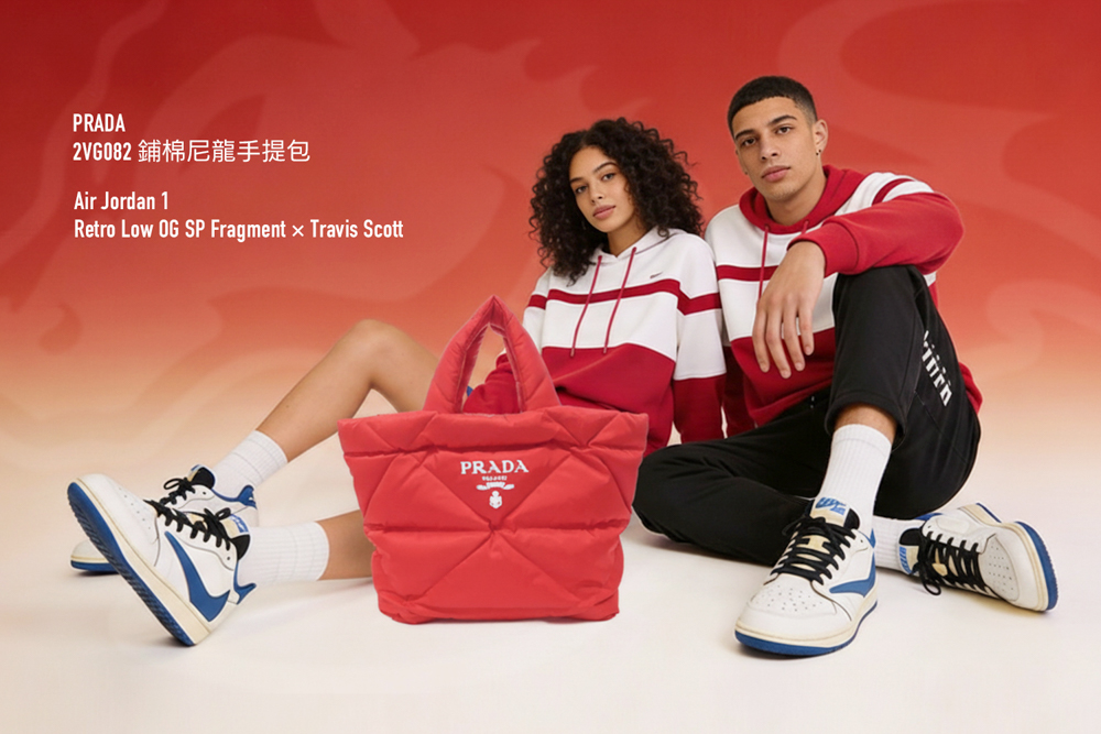 在此趨勢下,具代表性的聯名鞋款如 Air Jordan 1 Retro Low OG SP Fragment × Travis Scott,更多被視為造型中的一個亮點,而非唯一焦點;搭配實穿鞋款、服飾與精品配件,反而更符合新年「實際會穿、也穿得久」的選物心態。