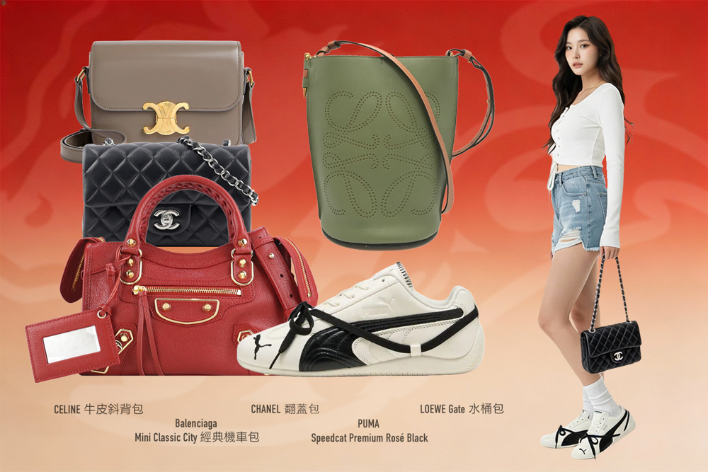 包款方面,經典又具辨識度的精品設計,仍是新年穿搭的關鍵角色。包括 Balenciaga MINI CLASSIC CITY 經典機車包,以及 CHANEL 翻蓋包、LOEWE Gate 水桶包、CELINE 牛皮斜背包 等款式,不僅能為新年造型畫龍點睛,也能延續至日常生活使用,讓新年購物更具長期價值。
