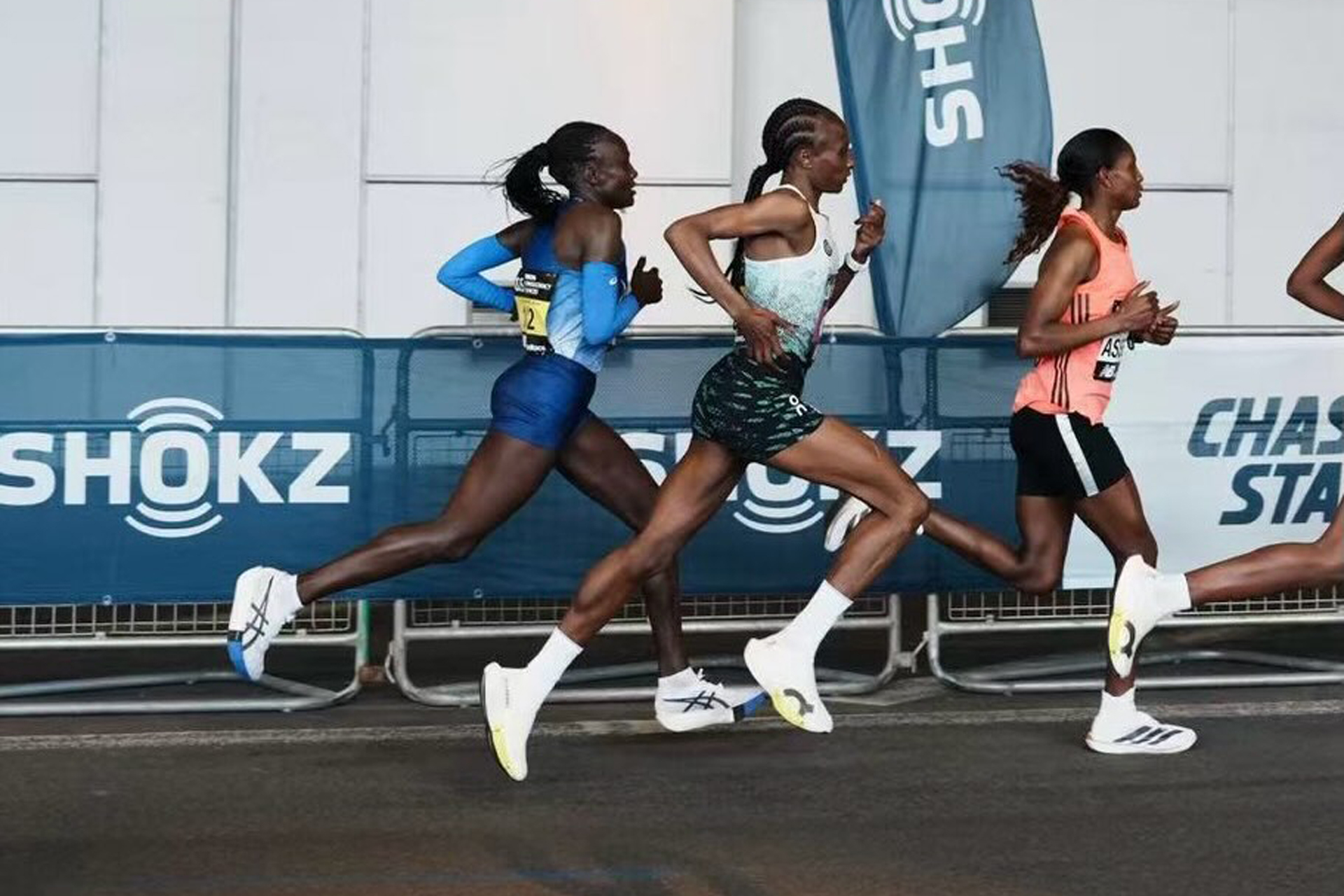 Joyciline Jepkosgei 穿著的鞋款則是 ASICS 的研發原型鞋,雖然系列還不明朗,但維持著品牌近年一貫的設計語言,沒有意外的話將會是既有系列的延續款式,ASICS 以 Metaspeed 系列分支為 Sky 與 Edge 再搭配超輕量的 Ray,在這幾年可說是重新殺出一條血路,這幾次大賽也持續佔有一席之地,期待會不會忽然拿出什麼祕密武器。