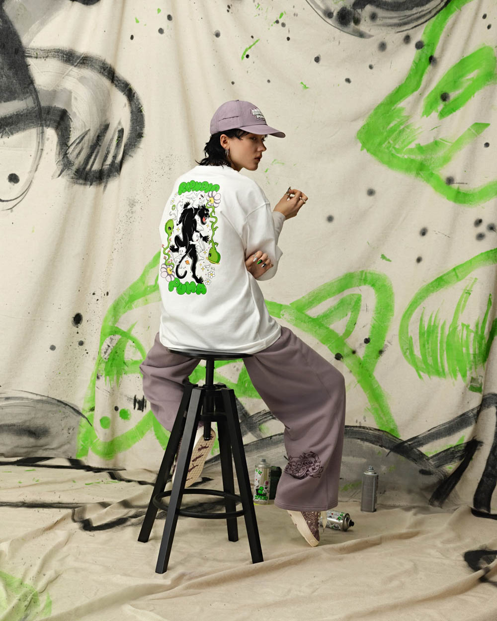 RIPNDIP 成立於 2009 年,濃縮了滑板族群的生活節奏和叛逆精神,靈魂角色中指貓 Lord Nermal,透過標誌性的中指和尷尬又不失禮貌的微笑,成為潮流圈叛逆的代表。RIPNDIP 用一隻貓咪告訴全世界:「我想做什麼就做,不要來煩我。」完美呼應全新世代無畏眼光,勇於自我表達的精神。這次與 PUMA 雙貓聯手,將中指貓的壞壞個性完整融合到每一件單品設計中,讓全球街頭充滿自由不羈的氣息。