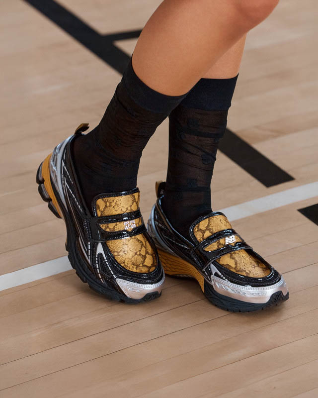 全新 New Balance x GANNI 1906L 兼具跑鞋的輕盈動感與樂福鞋的精緻結構,以大膽撞色的外底作為視覺基調,展現充滿能量的現代美學。鞋身以 GANNI 標誌性的蛇紋印花與鮮明配色打造強烈層次感,鞋面飾以金屬質感的 GANNI 蝴蝶標誌 與 New Balance 標誌,左右腳以兩種風格巧思顛覆傳統,呈現專屬於自信與獨立的多重風格。