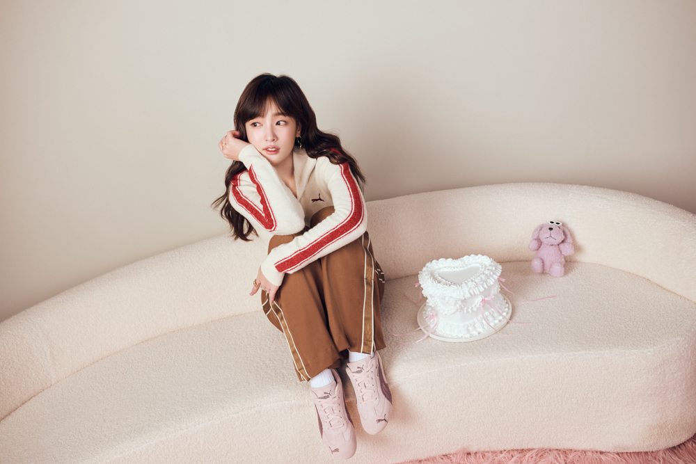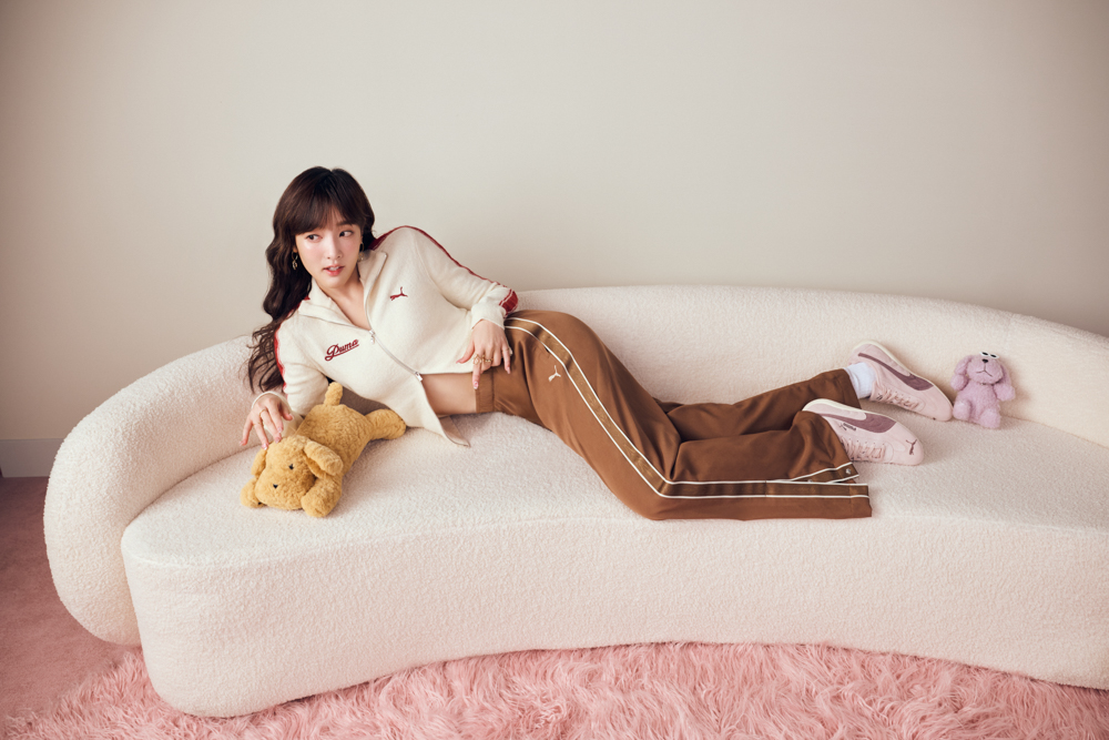 PUMA 攜手 PAZZO 共同演繹專屬冬季的 Lazy Weekend 慵懶週末系列,特別邀請品牌大使王淨 GINGLE 詮釋本季穿搭,穿上純米冬日必備針織立領外套,點綴丹紅側邊邊條傳達聖誕氛圍,下身選擇大地咖色經典長風褲,透過異材質與風格的組合,展現出獨特的率性穿搭。最後腳踩國民薄底鞋 SPEEDCAT OG #玫瑰粉,輕鬆搭出慵懶與時髦的冬季時尚。