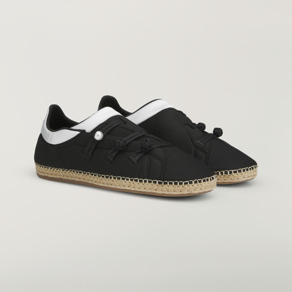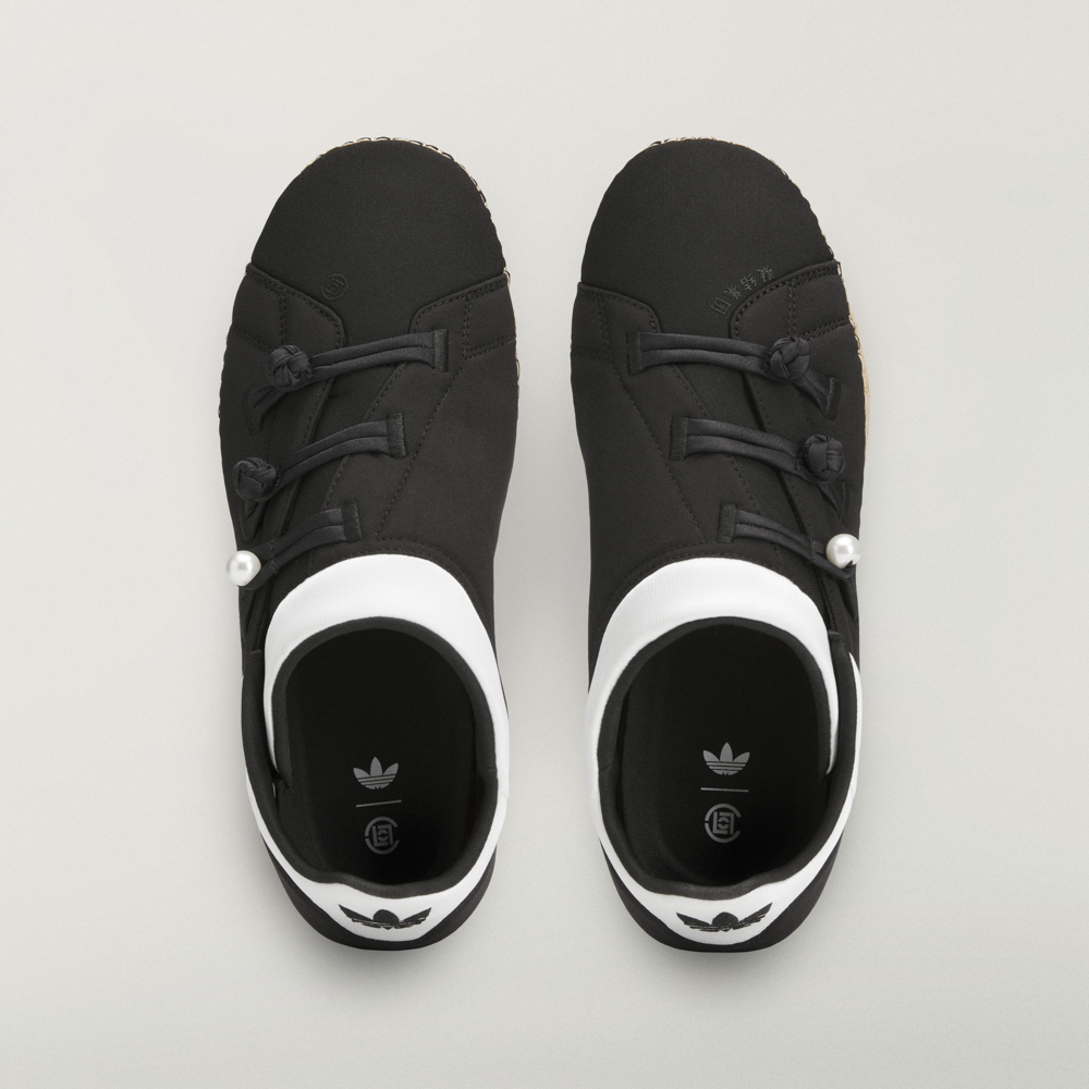 除了生肖象徵,系列亦從功夫的優雅、律動中汲取靈感。CLOT Qi Flow 鞋款即是這種傳統設計語言流暢融合的典範,尼龍鞋面、緞面鞋領、珍珠與盤扣設計,以及汲取自帆布草編鞋靈感的外底,共同打造出一款兼具傳統工藝與現代生活方式的鞋履。
