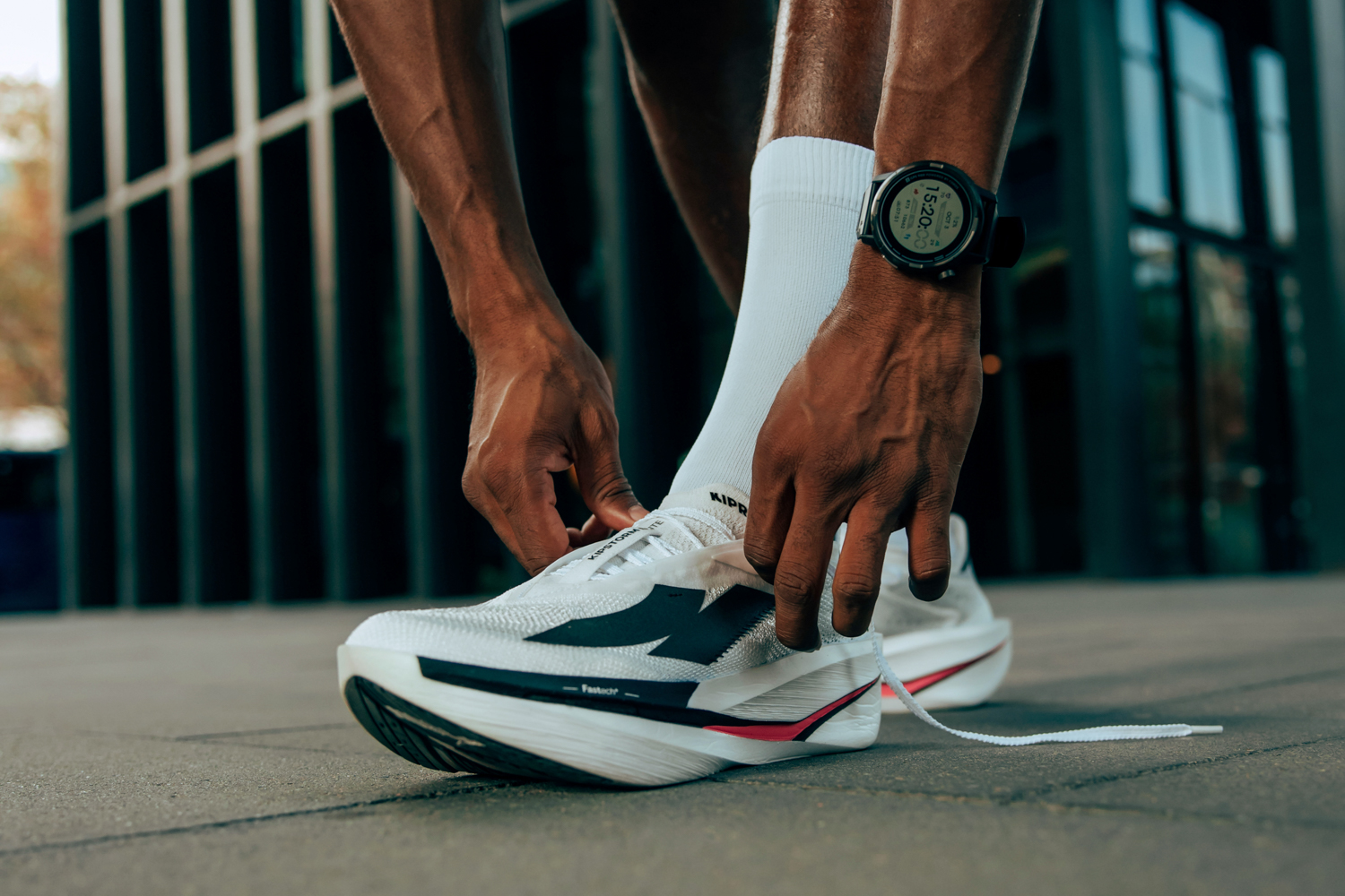 KIPSTROM 系列專為比賽與高強度訓練打造,採用碳板技術與 FASTECH+ 雙密度中底,動力回饋提升 13%,協助跑者在長距離競賽中維持速度與節奏。