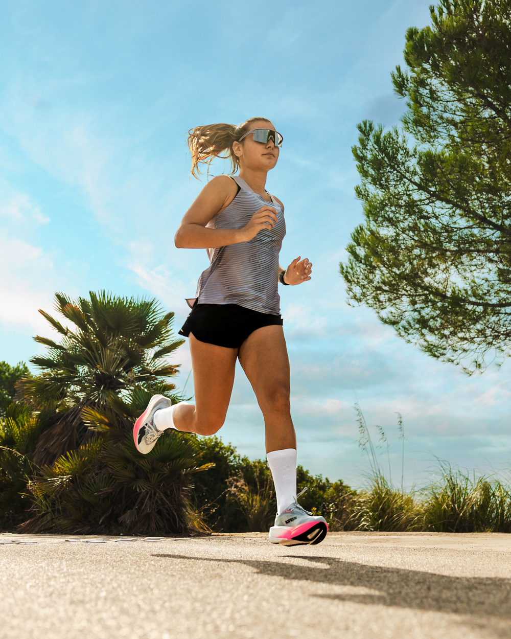 頂級競速款 KIPSTROM ELITE 為公路競速主力款,襪套式 3D 針織鞋面搭配蝴蝶紋理鞋帶,兼顧透氣、舒適包覆與輕量,保留前代協助打破馬拉松紀錄的性能血統。巴黎專業盲測結果顯示,25 位頂尖跑者中有 21 位選擇 KIPSTROM ELITE,證實其腳感與性能優於前代產品,品牌以相對親民價格,提供媲美頂級超級跑鞋等級的競賽規格。