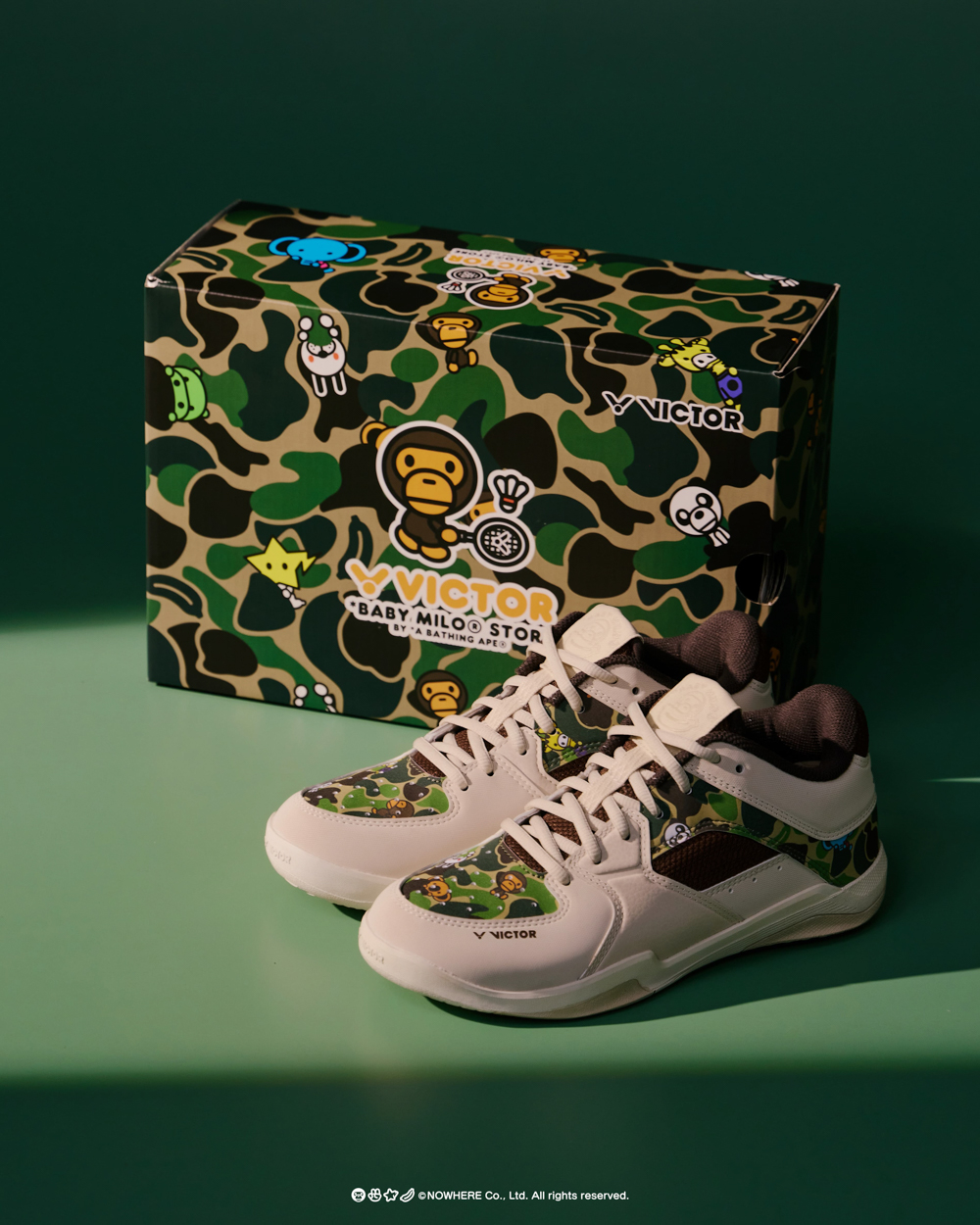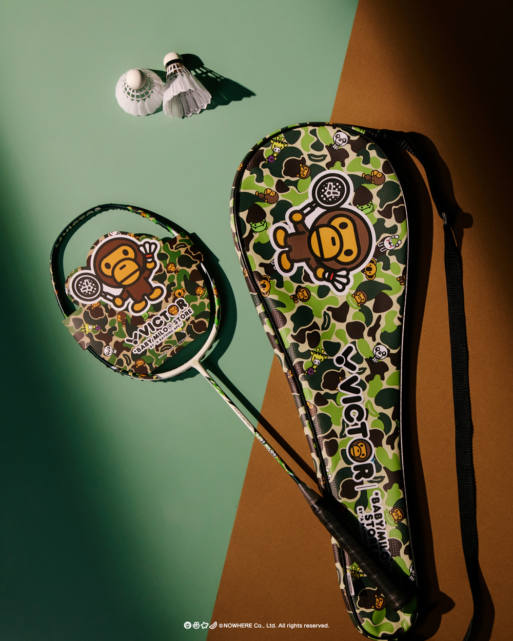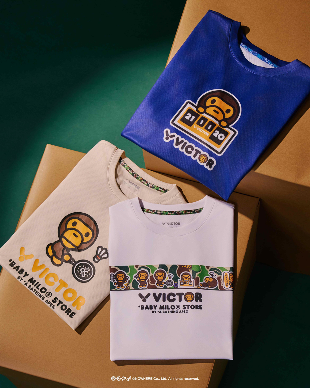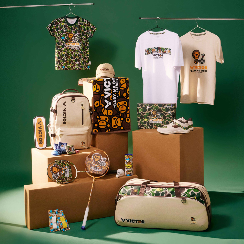 羽球領導品牌 VICTOR 攜手時尚品牌 BABY MILO STORE®,推出多款聯名羽球裝備。VICTOR x BABY MILO STORE® 全套聯名系列商品結合 BABY MILO® 經典角色與獨特迷彩圖案,從專業球拍、羽球鞋、NCS 碳音球到日常不可缺少的服飾與帽子等配件,為羽球愛好者打造羽球與潮流文化的跨界羽球裝備。