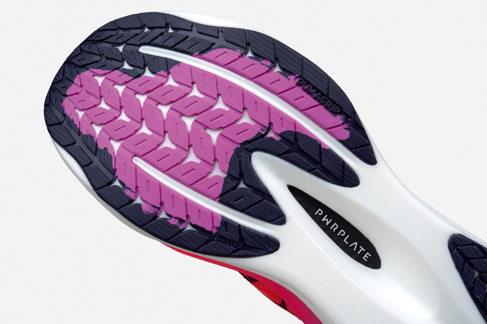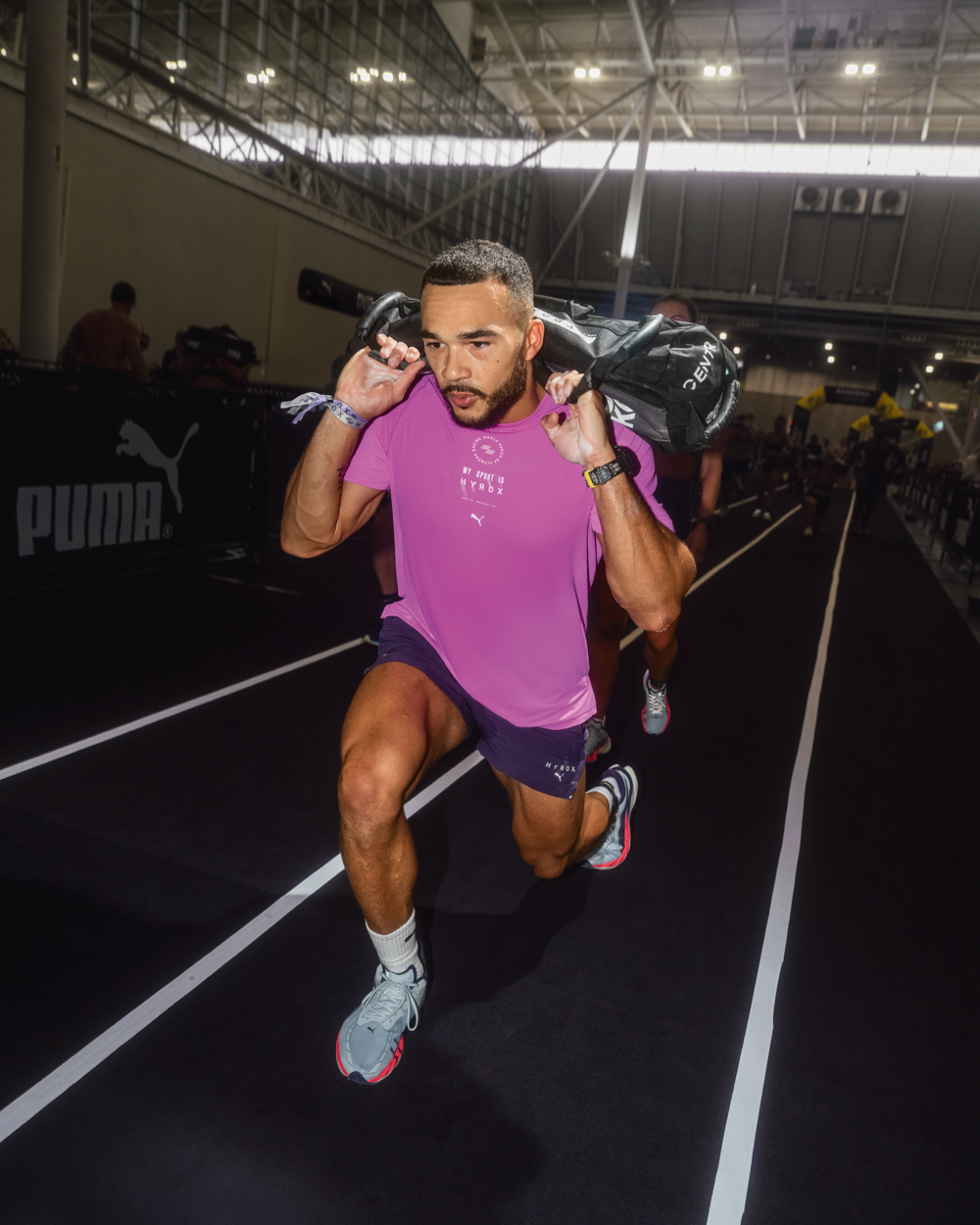 聯名系列鞋款以 PUMA 全新進化之 DEVIATE NITRO™ 4 為原型打造,鞋面採用工程透氣網眼布,整體重量僅 250g,較前代大幅輕量化 15g,賦予步履更極致的靈活度;PWRPLATE 全掌式碳纖維推進片搭配特殊肋狀結構,顯著提升剛性與穩定性,讓能量回饋加倍釋放;搭載雙密度 NITRO™ 氮氣中底,柔中帶彈的特性助選手在 1 公里的間歇跑步中維持節奏;進階版 PUMAGRIP 防滑耐磨大底增加覆蓋面積,無論在推拉雪橇或高強度波比跳,皆能提供全方位抓地力;最後搭配分離式鞋跟且加入斜角巧思,強化耐用度與著地穩定性,助選手在力量與耐力的邊界實現自我突破。