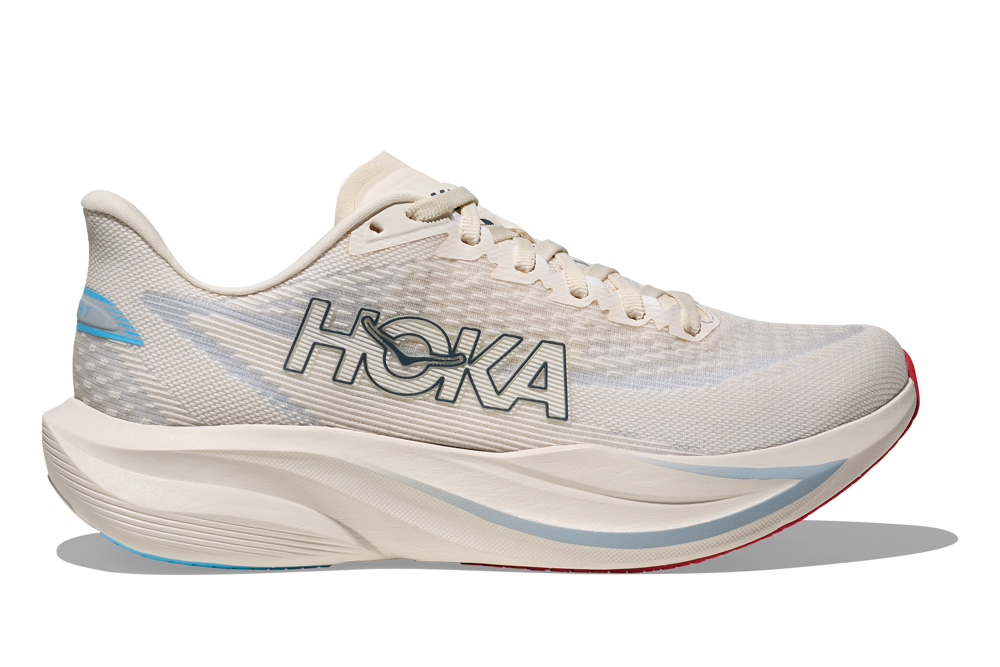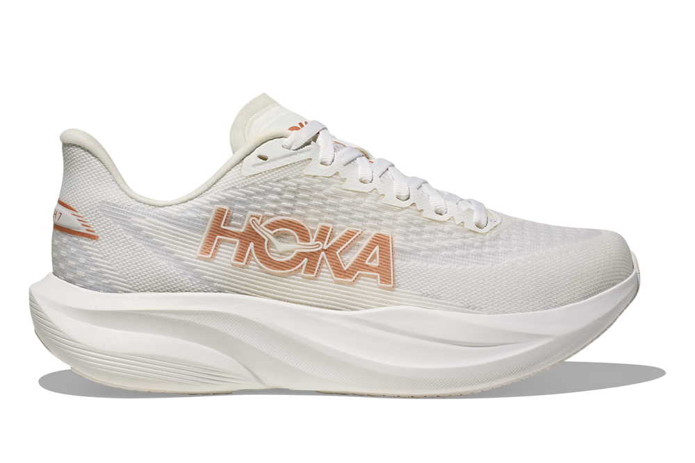 HOKA Mach 7 台灣定價NT$ 4,980 元,提供男、女款寬楦選擇,滿足不同腳型需求。女款包含霜白色/霓黃、雪岩白/晴空藍、霜白色/玫瑰金三種配色;男款則推出霜白色/霓黃、雪岩白/晴空藍,以明亮動能色彩延伸春日活潑,兼顧訓練性能與日常穿搭。