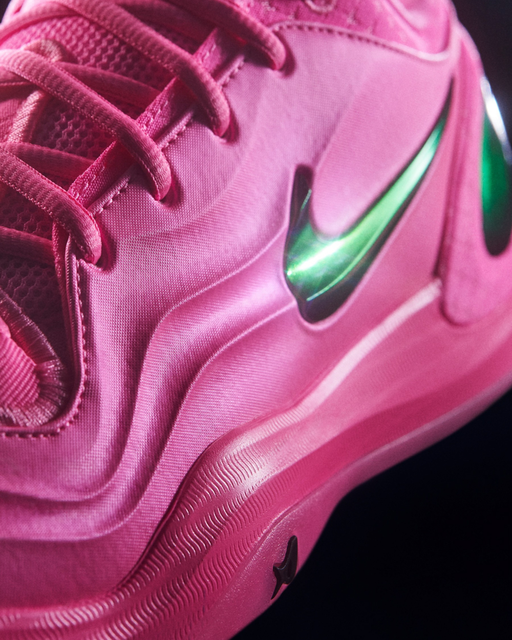 A’Two 不僅性能突出,在外觀上也同樣強烈而富有表現力,整體設計緊扣 A’ja 的個人故事。鞋頭加入 刺繡星星圖案,呼應鞋舌上的 A’ja 專屬標誌,同時象徵她在籃球表現與文化影響力上的領導地位。首發配色 "A’Pink" 以 A’ja 最喜愛的粉色為核心,搭配會隨光線變化的虹彩質感,呈現在 Swoosh、支撐板、後跟與鞋舌徽章上,展現她充滿活力與玩心的一面,也為未來更多 A’Two 配色鋪陳舞台。