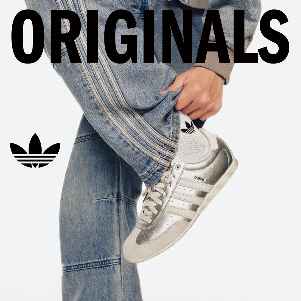 男裝單品以「復古運動風格」為基底,疊加更具層次與質感的時尚表達,詮釋簡約高級感。全系代言人王鶴棣同款毛邊拼接外套,以時髦俐落的 oversize 版型為亮點,透過雙向拉鍊與亮色三葉草標誌點亮造型張力,搭配全新鏡面銀 CHANGLE 鞋款,進一步強化復古混搭的層次詮釋。