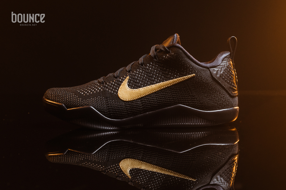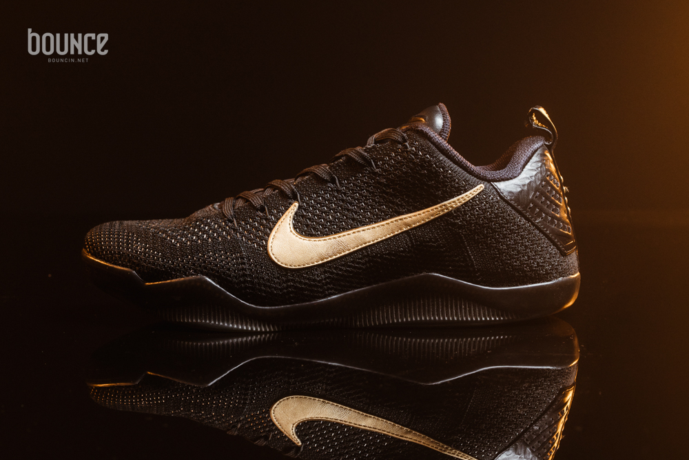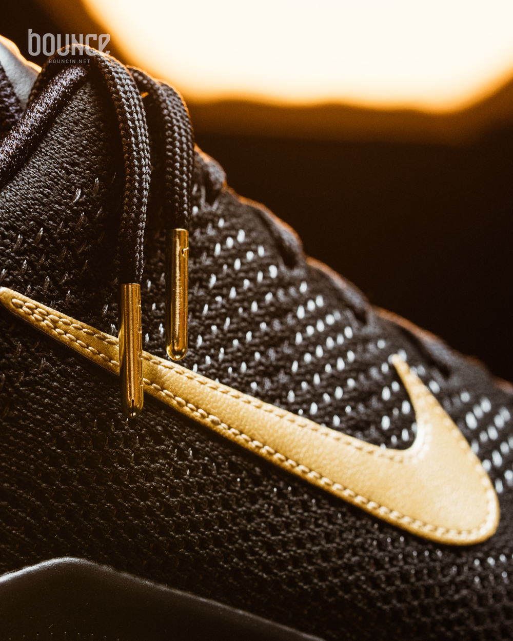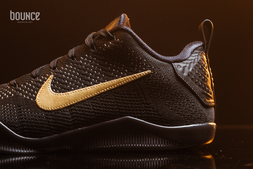 本次登場的 Nike Kobe 11 Elite Protro 延續標誌性的黑金配色,採用黑色 Flyknit 編織鞋面,並於細節處點綴金屬金元素,中底配置則全面升級為 ReactX 可抽換式系統,取代原版 Kobe XI 所搭載的 Lunarlon 泡棉,同時保留後跟 Air Zoom 氣墊。