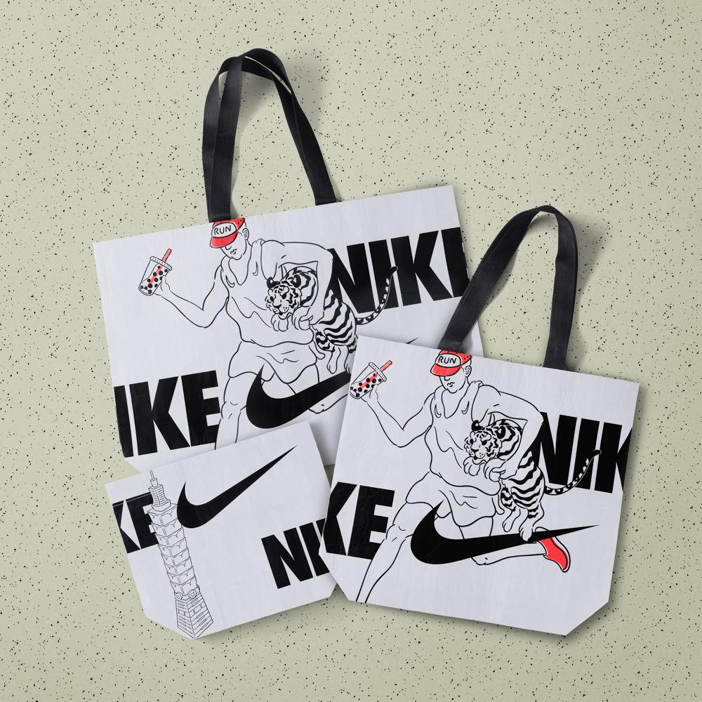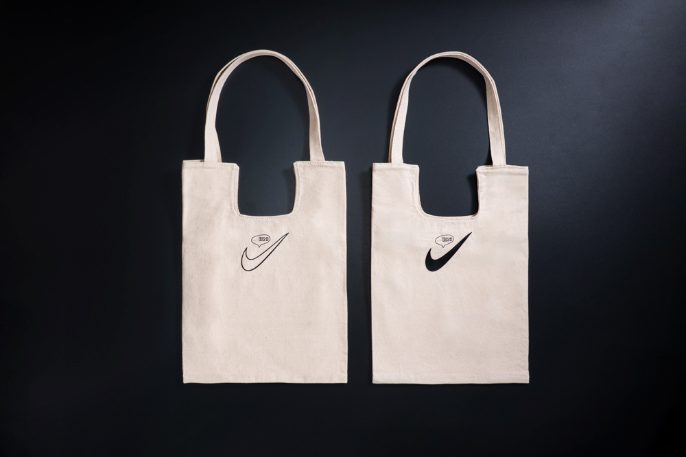 於 Nike 臺北品牌體驗店購買鞋款或服飾,即可加購 Nike 臺北品牌體驗店獨家購物袋乙個。