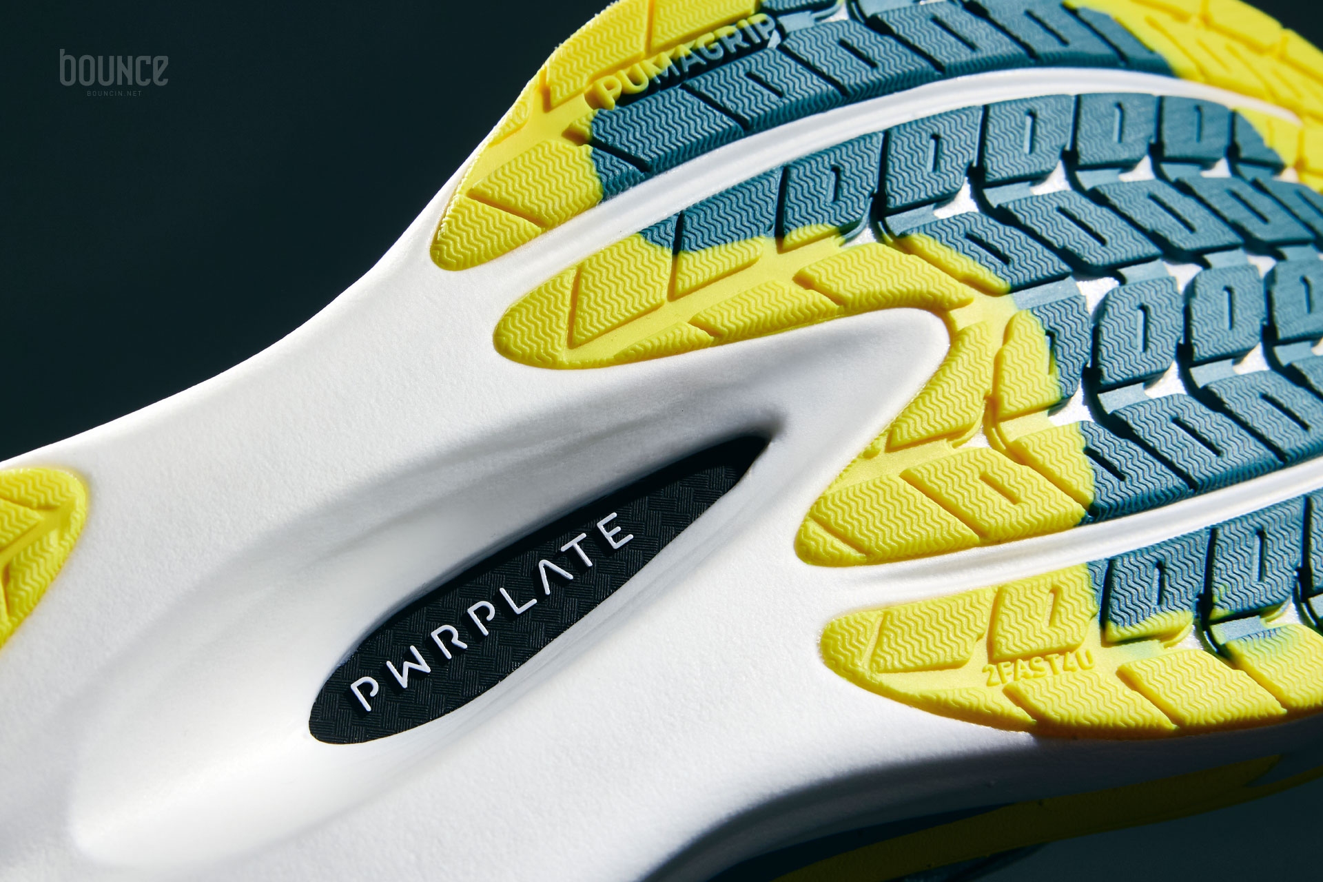 PUMA PWRPLATE 動力推進片採用全掌式熱塑碳纖維,這次還採用肋狀結構設計,目的在於強化穩定性與剛性,帶來流暢傳導並轉化為推進力。