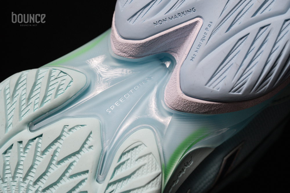 SWIFTACE YUKI 鞋底採用連結前、後掌的勺狀 SPEEDTRUSS™ 結構,提供迅捷第一步所需的前驅推進力,提升切入、變向時的靈活度與爆發力。