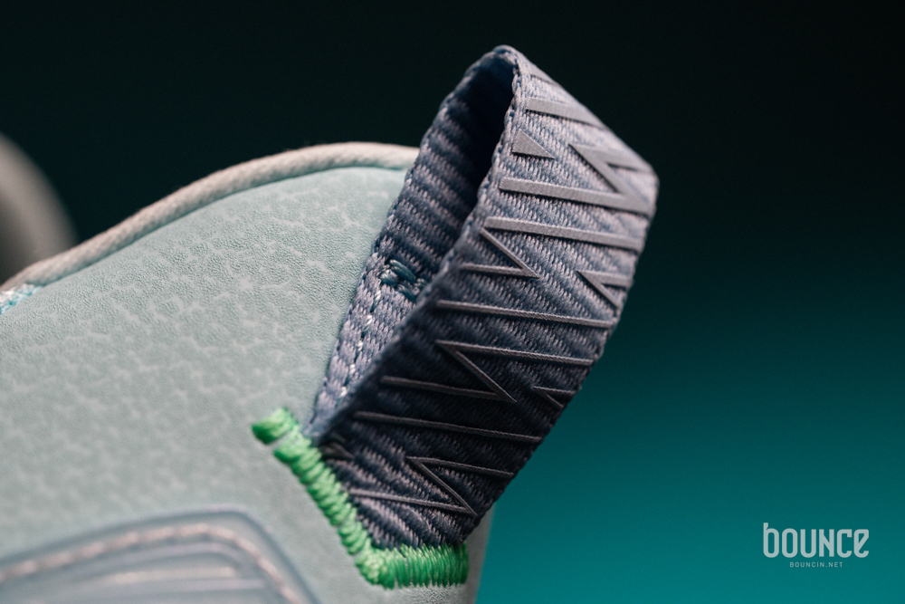 NEXKIN(PU)網布鞋面提供優異的包覆性、透氣度與支撐性,使鞋款在激烈比賽中保持輕量與耐用的平衡,動態鞋帶環系統內側第 3 孔與外側第 5 孔採用動態結構設計,可依足部動作調整張力,在高速變向與切入時提供更佳貼合與穩定性。