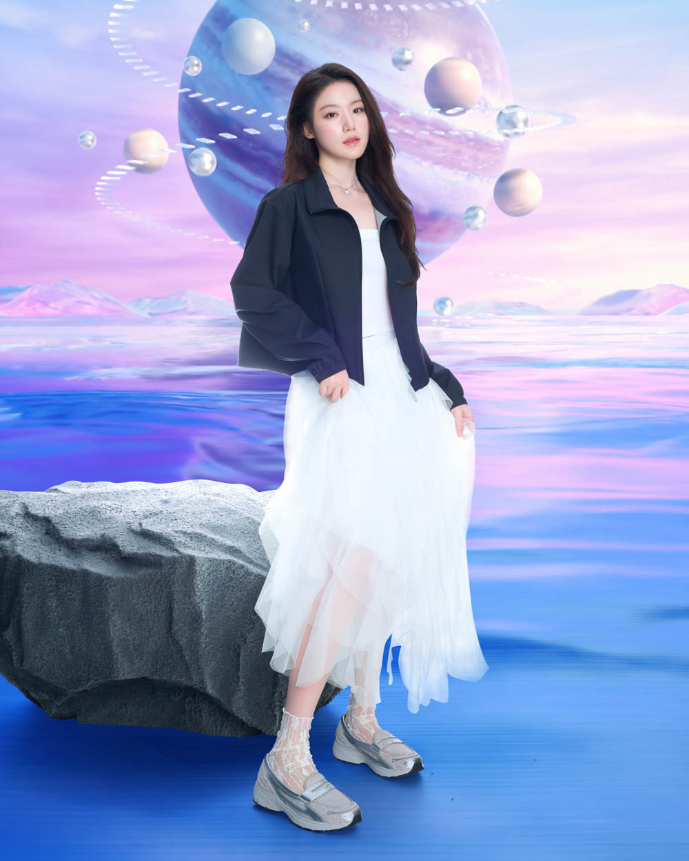 相較於 UNO RYZE 以多重拼接鞋面打造的未來感造型,VAR-CITY 則以純色系與極簡線條展現另一種前衛姿態。SKECHERS 將運動基因注入樂福鞋輪廓,重新詮釋「時尚 × 機能」的 Y3K 美學,整體鞋面採用透氣網布結合亮面金屬質感皮革裁片,搭配流線設計勾勒未來輪廓,同時維持 SKECHERS 一貫的輕量與舒適特性,讓 Y3K 元素發揮得淋漓盡致。代言人舒華身著裸白長紗裙與俐落短版外套,以柔美與率性的反差演繹 VAR-CITY 的未來魅力,展現出剛柔並濟的高級時尚感,為穿搭注入無限可能,開啟 Y3K 時尚的全新篇章。
