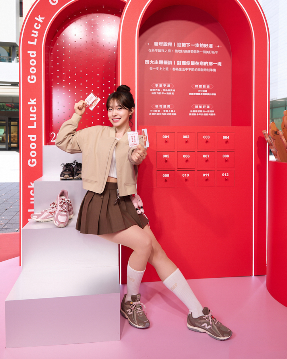 《NB 好事轉運站》巧妙使用磚紅色調營造大氣氛圍,結合「好運上上籤」、「好運扭蛋機」與「好運拉霸機」等充滿趣味的年節情境,並搭配每日限量好運禮,打造馬年必訪的時尚打卡新據點,祝福大家在春節假期中收集滿滿能量。活動期間,出示 New Balance 官方 LINE 帳號活動畫面,即可參與一系列新春賀歲活動,一同歡慶新年喜悅。