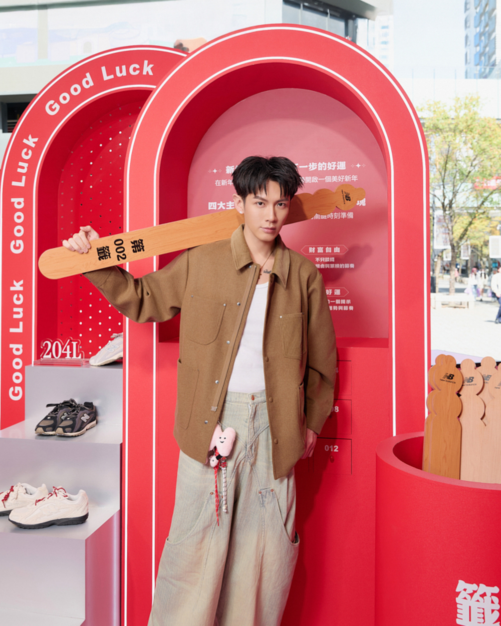 柯震東選擇簡約俐落的 New Balance 2010 鞋款搭配 NB Grey 系列羊毛毛呢外套,展現出時尚街頭感造型,低調中展現層次感與設計感,將經典千禧鞋型融入都會風格元素,呈現輕鬆卻有態度的新年造型:「日常穿搭喜歡以舒服、自在為主,再搭配腳上 2010 增添整體亮點,腳感非常舒適一整天都很輕鬆,是我會推薦給親朋好友的潮流單品。」柯震東也親自體驗《NB 好事轉運站》,對三大關卡讚不絕口:「每一個關卡都很有趣,一邊玩一邊感受新年的喜氣,真的很適合和朋友一起來收集好運。我自己也很喜歡『好事成雙』這個概念,希望大家在新的一年不只收穫滿滿好運,也能和所愛的人一起分享喜悅。」