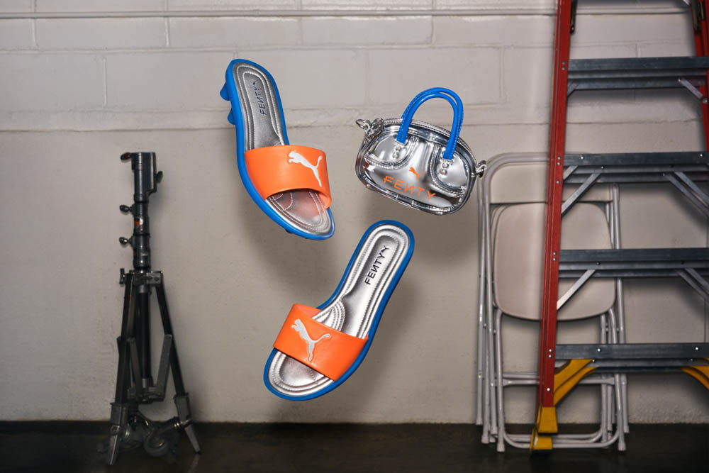 FENTY x PUMA 聯名系列帶來三款焦點鞋款,揉合足球元素與金屬細節,展現前衛與經典共存的時髦品味。本次焦點鞋履 FENTY x PUMA AVANTI LS-X 靈感源自 PUMA 經典足球鞋,透過金屬銀鞋面與流線造型重新演繹,鞋舌延伸設計呼應未來感設計,搭配上鮮橘彎刀與湛藍大底的撞色配置,襯托整體金屬感,體現 Rihanna 獨具前衛的設計視角。而 FENTY x PUMA Slide Chic L 與 Slide Chic Fur 兩款涼拖鞋型,分別以果凍感中底與或毛絨材質的設計打造,展現出趣味層次,將足球元素轉化為日常穿搭的亮眼焦點,讓金屬系足球美學自然融入日常穿搭。