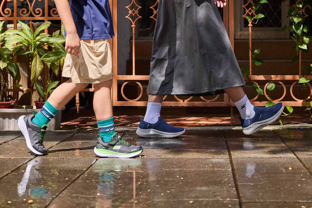 在本季 SKECHERS WATERPROOF 防水鞋系列宣傳中,品牌特別聚焦不同族群在多元生活場景中的需求,從日常通勤、親子旅行,到雨後山林探索與浪漫街頭漫步,SKECHERS 以全方位防水機能賦予消費者「無畏風雨的超能力」。即便大雨滂沱,也能讓雙腳保持乾爽舒適、俐落有型,在每一段旅途中自在跨步,盡情展現自我風格。