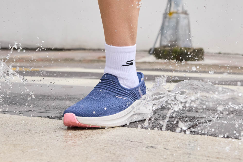 SKECHERS WATERPROOF 防水鞋系列,顛覆大眾對雨天的既有印象,讓潮濕天氣不再是行動的束縛,而是盡情探索的舞台。其中,ARCH FIT 2.0 系列鞋款更是結合 SLIP-INS® 瞬穿舒適科技,免彎腰、免動手即可一秒穿上,無論是趕著出門的早晨,或是臨時決定的城市小旅行,都能迅速整裝出發。鞋款以 100% 全防水設計 搭配多重舒適科技,兼具輕盈腳感、穩定支撐與全天候保護,讓消費者在雨天依舊能自在行走。即使面對泥濘與積水挑戰,仍能保持雙腳乾爽不受影響,實現從容無憂的穿著體驗。