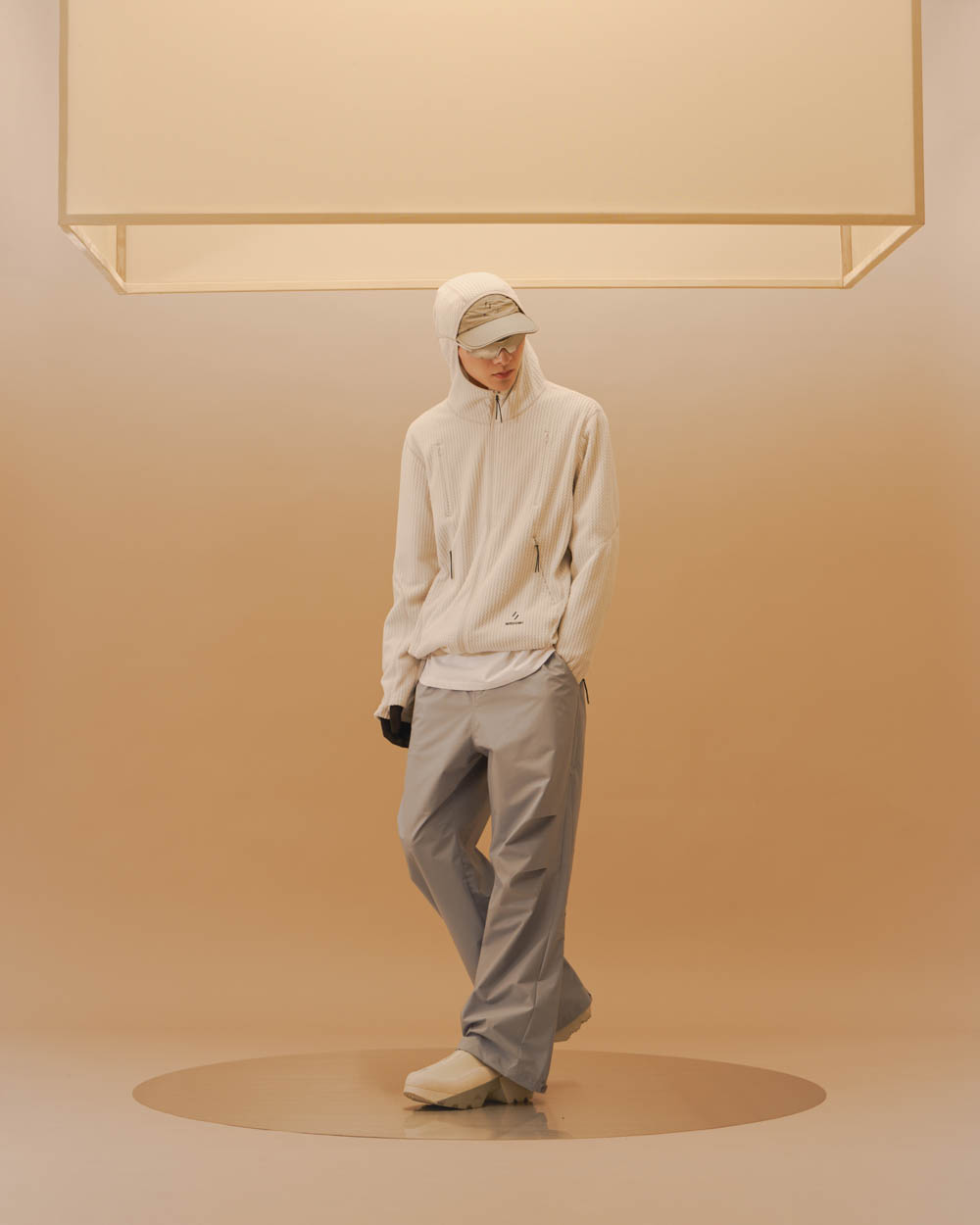 本次共推出 3LAYER 防水夾克、拉鏈連帽外套、健行長褲、長短袖 T-Shirt 與七分割帽,保有符合人體工學的舒服穿著輪廓之餘,藉助三層結構、抓絨面料與快速散熱系統,實現游移都會與大自然間所需的防風、防潑水、輕盈透氣及保暖體驗。多重收納空間、俐落裁線、下擺抽繩系統、反光細節與可變化靴型褲腳,在實用基礎上展望更多元穿搭造型;此回別著限定飄逸老松圖騰,以韓國國樹點名品牌出生地;高聳挺拔樹身銜接天與地,象徵兩界間的溝通橋樑,映襯聯名深刻寓意。