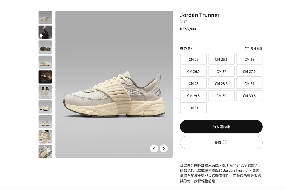 而腳下的 Jordan Trunner O/S 則是 Jordan Brand 向千禧復古與 Jumpman 場下經典風格的致敬,為多元風格搭配打造的舒適鞋款。飛翼造型搭配 Cushlon 3.0 泡棉中底,以及輕質網眼與高質感麂皮的拼接,打造兼具舒適腳感與造型的單品。穿上它,在城市街道中穿梭,在自然風光中漫步,自由自在地漫遊。