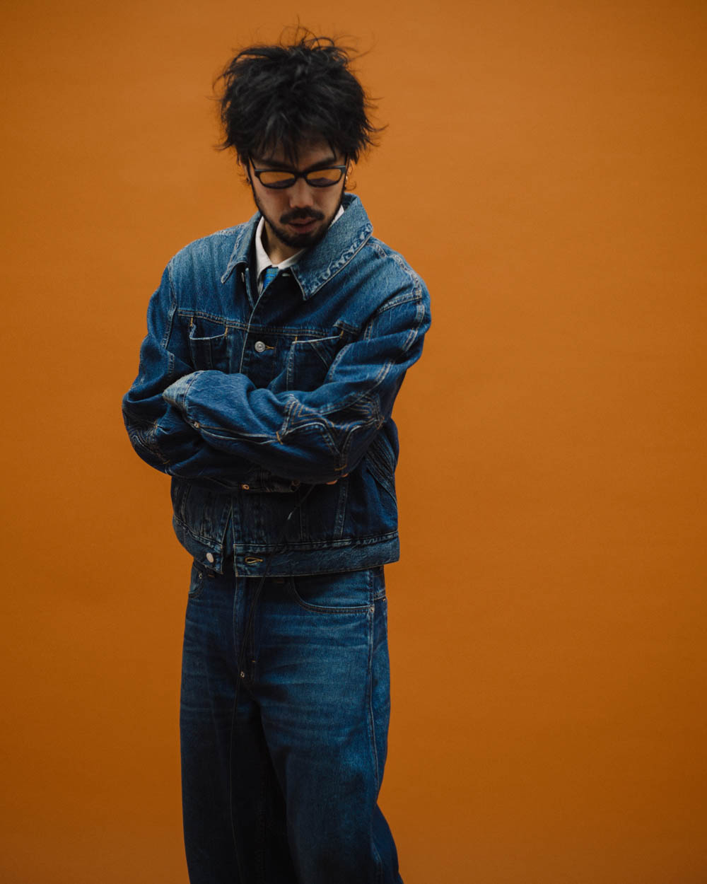 結實耐用且適應性強的丹寧布,逐漸成為許多藝術家的「第二層肌膚」。它不僅出現在創作的工作室裡,也隨藝術家走進畫廊開幕、媒體採訪、攝影現場,甚至進入上流社交場合。隨著丹寧在藝術家身上流動與轉化,它經常出現在意想不到的場域,並以顛覆傳統的穿搭方式呈現。於是,丹寧成為一種多變且低調的反叛,一種民主、大量普及的布料,卻能在充滿慣例和行為準則的空間中佔有一席之地。
