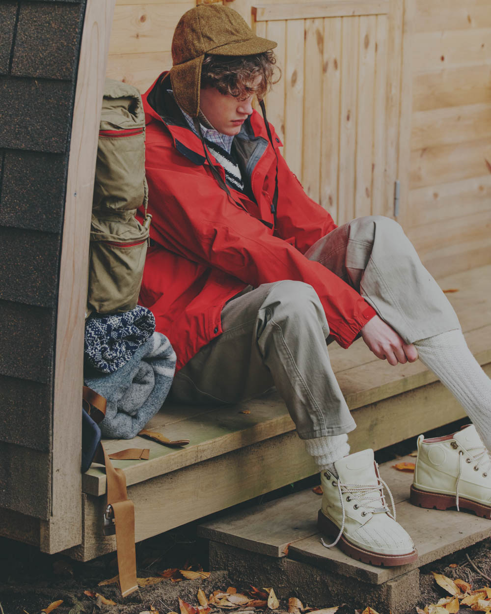 如今,TYLER, THE CREATOR 以 MUD CHUNK 為範本,打造出全新的 BRONCO BOOT,融合了戶外風潮與都市風格,既適配現代生活場景,又蘊藏著躍動不息的山野力量;在鞋型比例上 BRONCO BOOT 延續了 MUD CHUNK 的硬朗姿態,設計細節處則濃縮了 CONVERSE 百年製靴工藝和創新歷程。