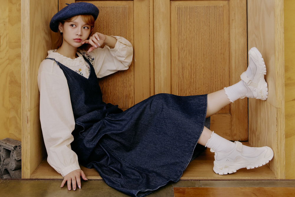 換上純白色系的 MOONHIKER 與 D’LITES HIKER,搭配荷葉領刺繡上衣與吊帶裙,立刻散發帶點復古調性的文藝氣質,延續 SKECHERS 的舒適支撐與修飾比例效果,視覺上更顯輕盈、乾淨。無論漫步文青街區、探訪獨立書店,或停留在美術館光影之間,白色瑪莉珍鞋都是最安靜卻最迷人的存在,帶出屬於妳的柔美步調。