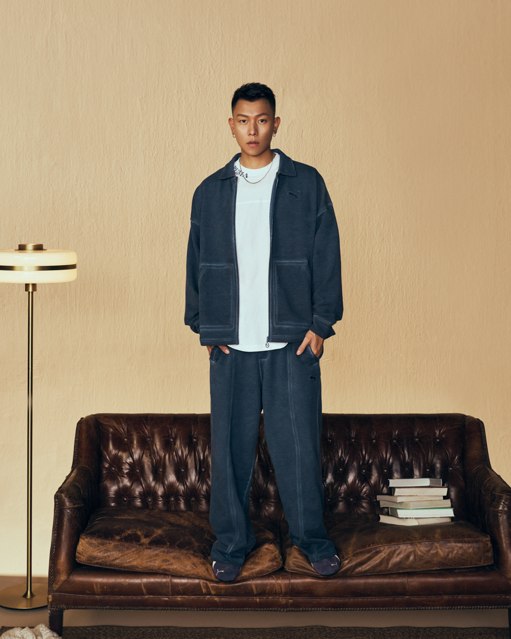 以水洗黑搭配微寬鬆剪裁,整體呈現低調卻富層次的率性感。刷舊細節提升復古感,自在又有型,腳上 SPEEDCAT OG 丹寧藍 延伸整體色調一致性,營造慵懶、輕鬆的冬日氛圍。