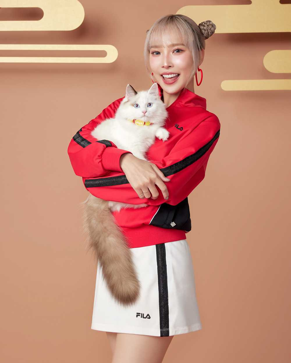 同時 FILA 形象大使 RINA 也以一身俐落紅色外套帶著愛貓拜年,過年想要喜氣又不失帥氣感,只要挑一件亮眼紅色外套就能立刻上身。相信不少寵物迷也會帶著心愛的毛孩一起過年,把「好看」和「好運」一起穿出門,用最有型的方式迎接新年。