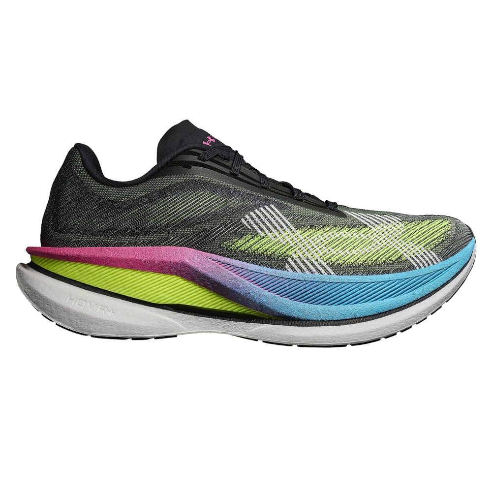 「VELOCITI PRO 2」鎖定高強度速度訓練需求,中底同樣升級為 HOVR+ 雙層 HTPU 中底泡棉,在保有輕盈腳感的同時提供穩定回彈;夾置於雙層中底間的 TPU 推進板相較碳板更為柔和,帶來自然順暢的推進感受,適合日常勁速、速度訓練反覆使用。搭配 LENO 編織鞋面所帶來的貼合與透氣表現,「VELOCITI PRO 2」成為進階跑者在賽前衝刺、節奏訓練中不可或缺的速度助力。